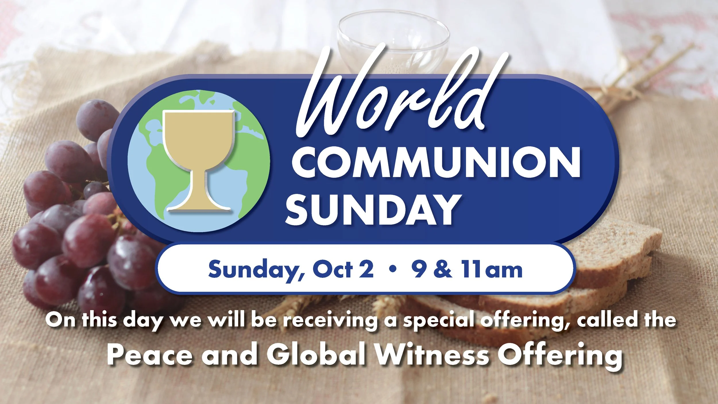 We will be receiving the annual Peace and Global Witness Offering, which enables the church to promote the Peace of Christ by addressing systems of conflict and injustice across the world.